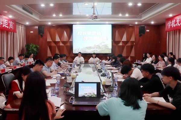 5月18日下午,福建技术师范学院第一期“校长见面会·倾听零距离”教学工作学生座谈会在该校科学楼综合会议室举行。校长廖深基教授与40名学生代表面对面座谈。