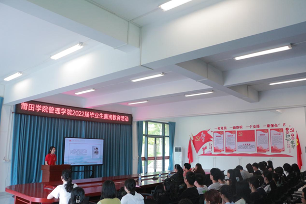 莆田学院将廉洁教育作为落实立德树人根本任务、开展价值引领与道德涵养的基本着力点,针对毕业生特点精心设计活动内容,创新教育载体形式,以毕业生喜闻乐见的体验式、沉浸式教育方式,增强“最后一课”的吸引力,在毕业生心中种下廉洁的种子。