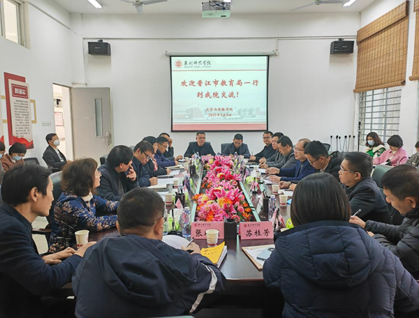 3月3日上午,晋江市教育局一行21人到泉州师范学院文学与传播学院交流研讨2023年度“美育浸润行动计划”。