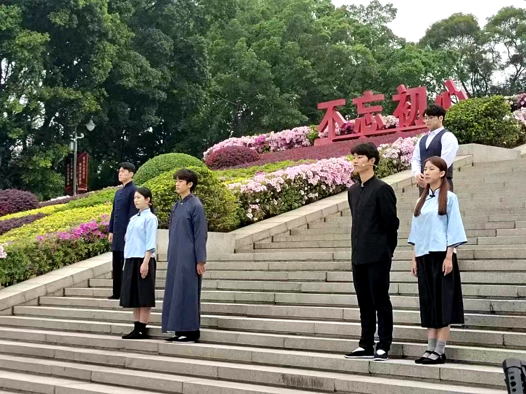 “当亦乐牺牲吾身与汝身之福利,为天下人谋永福也!”“就让你们的枪声,成为我们婚礼的礼炮吧!”“凭将一掬丹心在,泉下嗟堪对我翁。”福州大学至诚学院人文艺术系的学生在纪念碑前朗诵了林觉民《与妻书》片段、徐琛和余哲贞烈士牺牲前留言以及吴石将军的绝命诗等先烈经典名言和诗句。1000多名参与者跟诵,铿锵有力、饱含深情的话语声回荡在文林山的松林间。