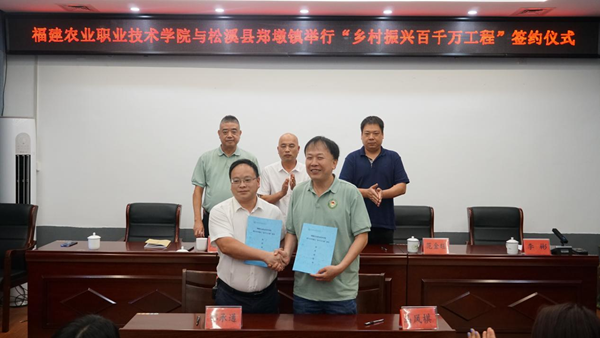近日,福建农业职业技术学院与松溪县郑墩镇举行“乡村振兴百千万工程”签约授牌仪式。双方将围绕科研科教服务、乡村振兴培训项目、农产品营销、新农培育、大学生创新创业和“三下乡”社会实践活动等方面深入开展合作。