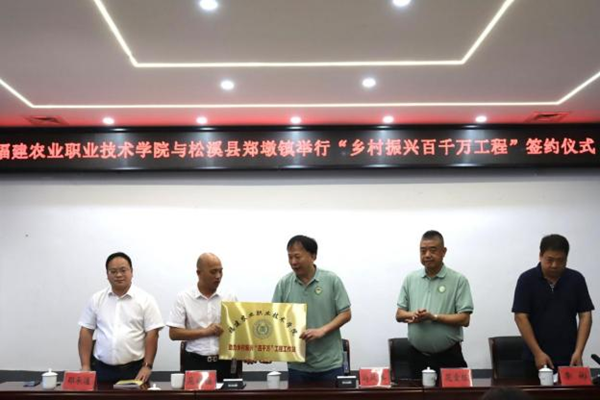 日前,福建农业职业技术学院与南平市松溪县郑墩镇签订“乡村振兴百千万工程”校地合作项目,并开展暑期三下乡社会实践活动。