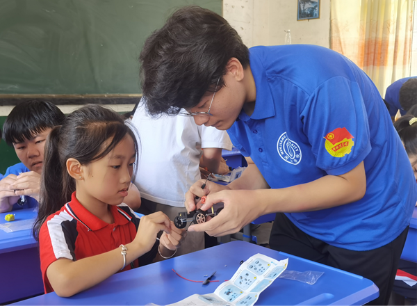 在福州市闽清县下祝乡中心小学,受当地政府邀请,闽江学院计控学院暖风支教实践队走进校园,利用专业知识教117名山区留守儿童学做风力小车,并给山区孩子送去书籍、书包等学习用品,在15天的教学里,他们还开展了德智体美劳体系化课程,与留守儿童共度“七彩假期”。