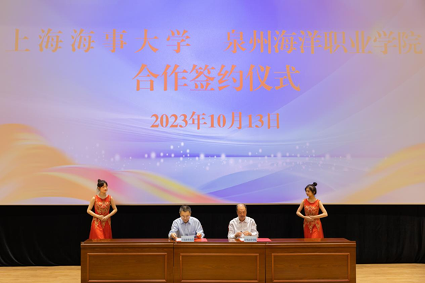 10月13日,泉州海洋职业学院与上海海事大学举行签约仪式,双方将在支持泉州海洋职业学院“升本”建设、科研合作与交流、师资和管理人才培养等方面进行深化交流合作。