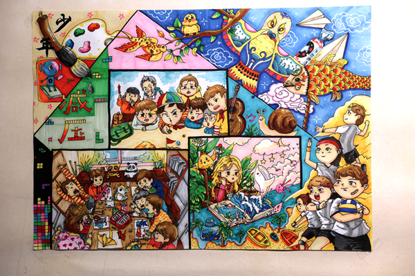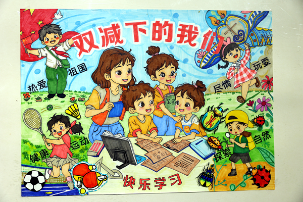 “我把课后服务这几个字融入了迷宫中,旁边还写上了有趣、多样、丰富、快乐,我希望大家都能找到自己喜欢的课后服务项目。”参展学生表示,海报的创作让大家进一步了解了“双减”的意义,同时也提升了美育素养。