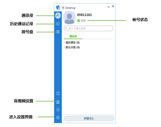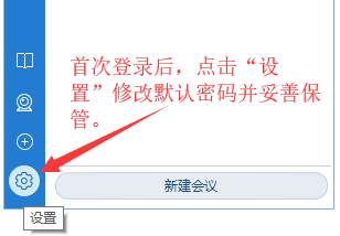 点击主界面左下角“音视频设置”按钮,进行麦克风、扬声器和视频设备设置,特别是与会后没有声音的,请提前做个测试。