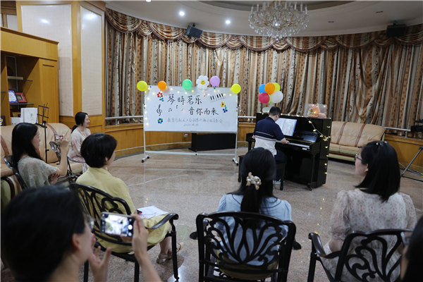 8月3日晚,省教育厅机关工会举办了一场别开生面的“琴时茗乐 音你而来”钢琴习奏会。来自机关钢琴兴趣小组的师生们向同事们展示了一年的学习成果。习奏会在钢琴兴趣小组任课教师、机关党委干部李琳的一曲《童年的回忆》中拉开序幕。乐曲旋律清雅优美,带领听众回到了那五彩斑斓的快乐童年时光。随后七位学员演奏了《千与千寻》《风车小镇》《夜的钢琴曲》《贝加尔湖畔》《裸体舞曲》《致爱丽丝》《这世界有那么多人》等乐曲,时而舒缓而流畅,时而轻曼而宽广,唤醒了现场听众那些沉睡在心底的浪漫情怀。学员们用专注执着的表演,展示学习成果,锻炼演奏技能,获得了观众的阵阵掌声。
