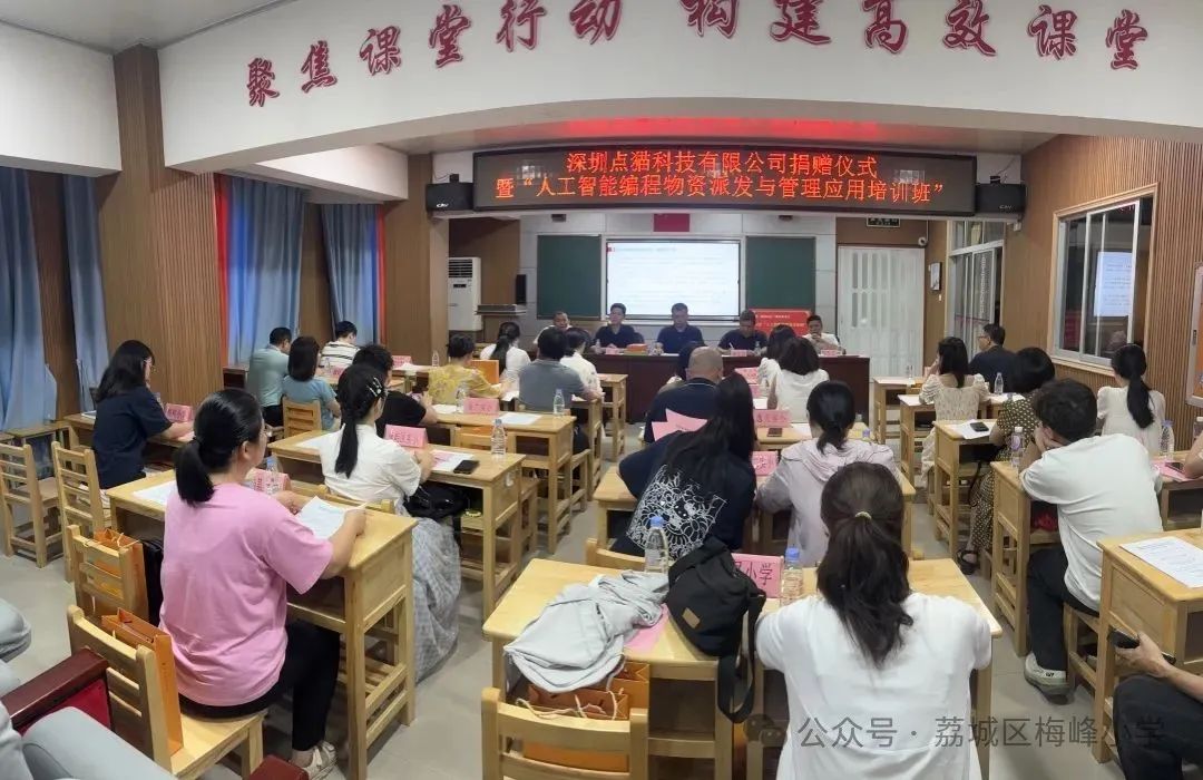 壶兰基金会理事长林如龙在致辞中,再次肯定陈华元校长分享的人工智能教育教学经验,强调梅峰小学作为第一批人工智能实验校,以其深厚的文化底蕴与创新实践,为其他项目校树立了标杆。他期待这批物资能助力各校提升科技教育水平,推动教育事业发展。点猫科技有限公司高级市场总监段成钢段成刚也表示,公司希望以科技之力,为更多学生打开接触前沿科技的窗口,培育创新人才。