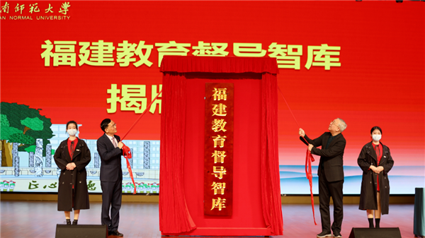 ▲国家特约教育督导员、福建省教育厅专职副总督学黄建顺宣布闽南师范大学教育督导研究院为福建教育督导智库