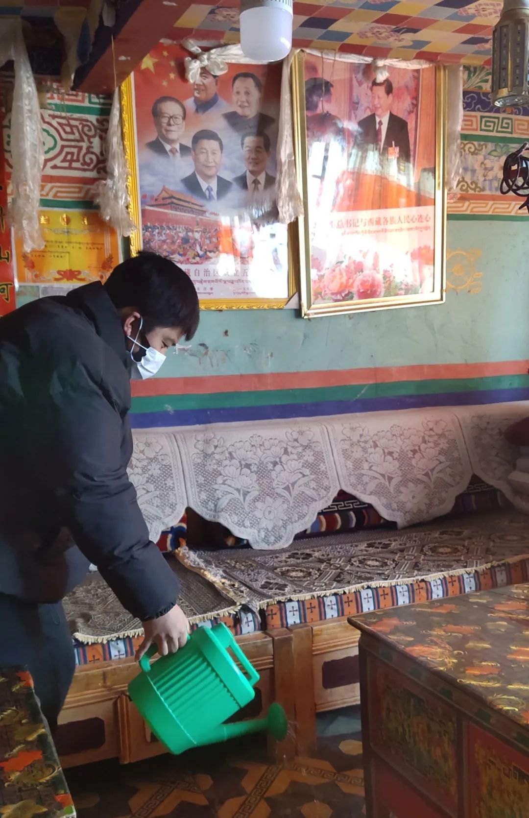 在西藏,他每天都要入户为居民消毒。针对当地普通话和汉字普及率低的情况,他主动收集整理防疫知识,并将其转化成当地群众能听懂的语言,确保每一名村民都能够了解防疫相关知识。