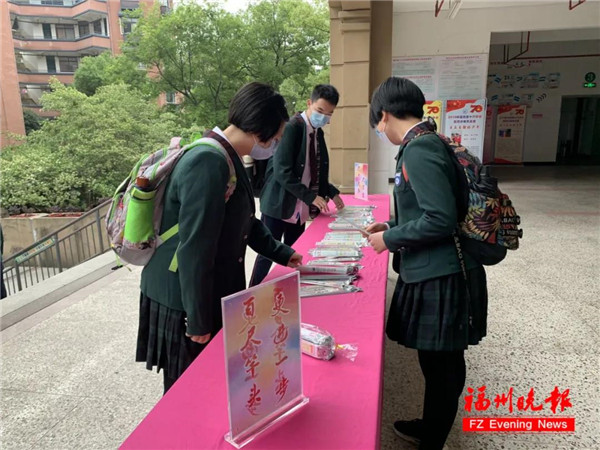 福州第十九中学向初三学生发放“复课纪念卡”。