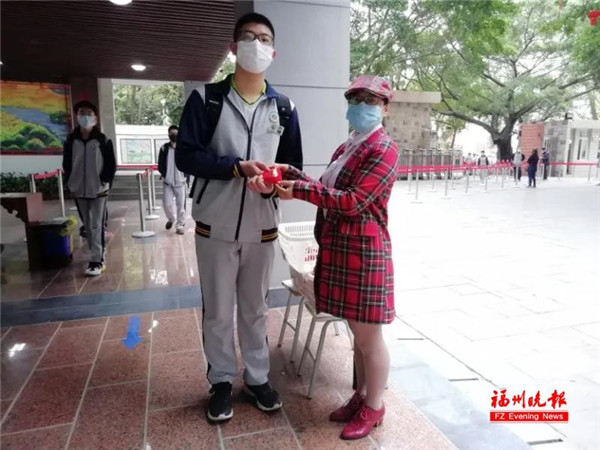 国科大福建学院附中(福州杨桥中学)向同学赠送红鸭蛋,鸭蛋在福州有“压乱”的寓意。