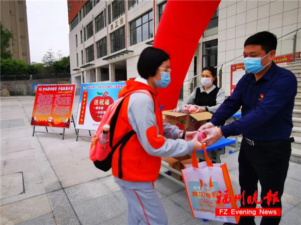 福州七中学生收到学校为他们准备的平安果。