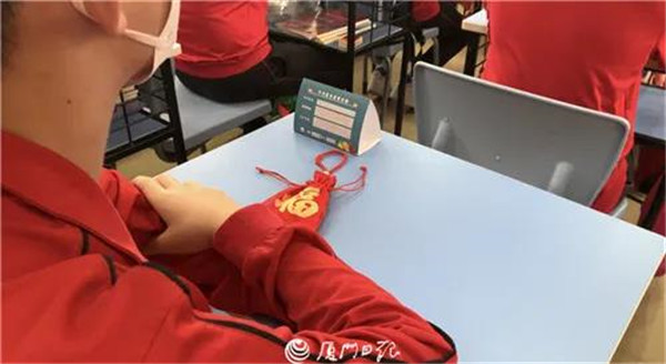 在火炬学校,火红的中国结、红灯笼、葫芦串为校园增添了不少色彩。“看到这些小细节太感动,学校太用心了。”初三(2)班学生陈琪琪不禁点赞道。