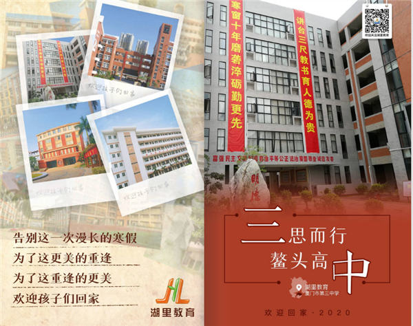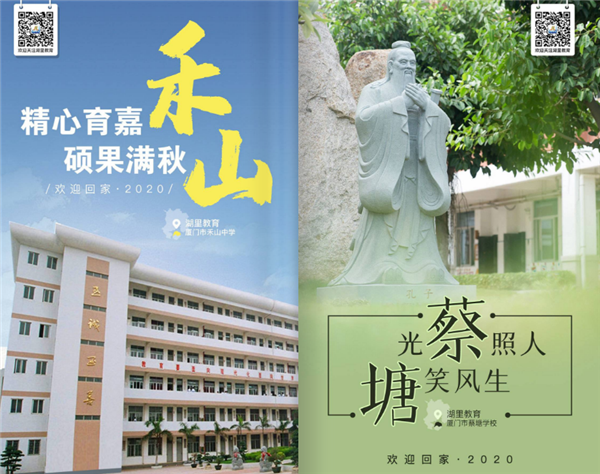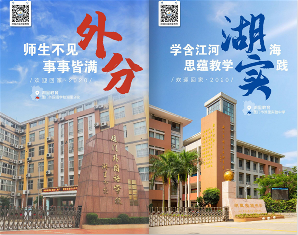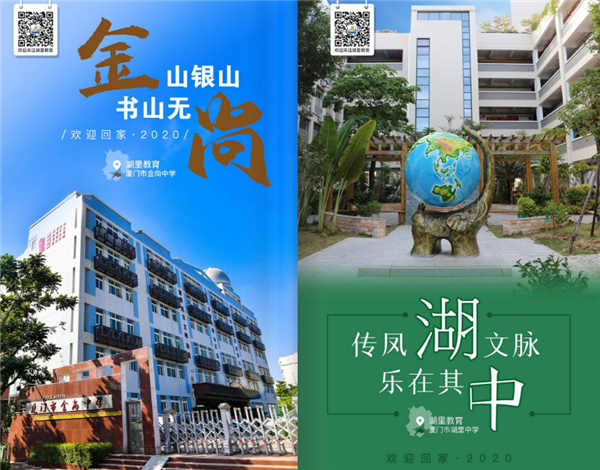 厦门市湖里区教育局也深情款款,专门制作回校宣传片,以及52所学校的宣传海报,每张海报都把学校的名称巧妙地嵌入欢迎词。