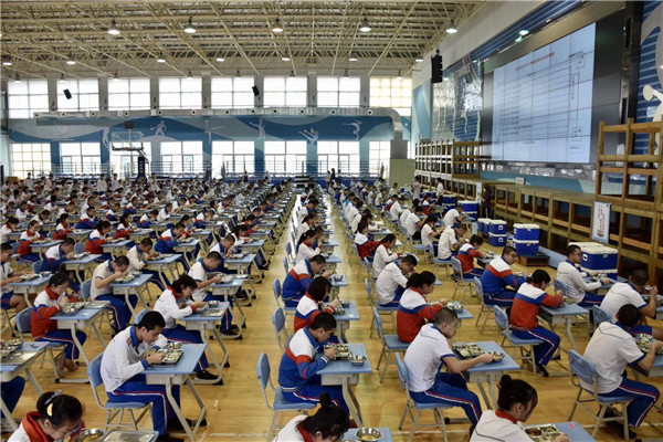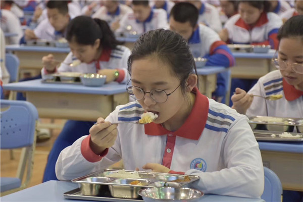 厦门科技中学实行学生就餐错峰出行,高三用餐完毕,全部离开后,初三才进入食堂用餐。