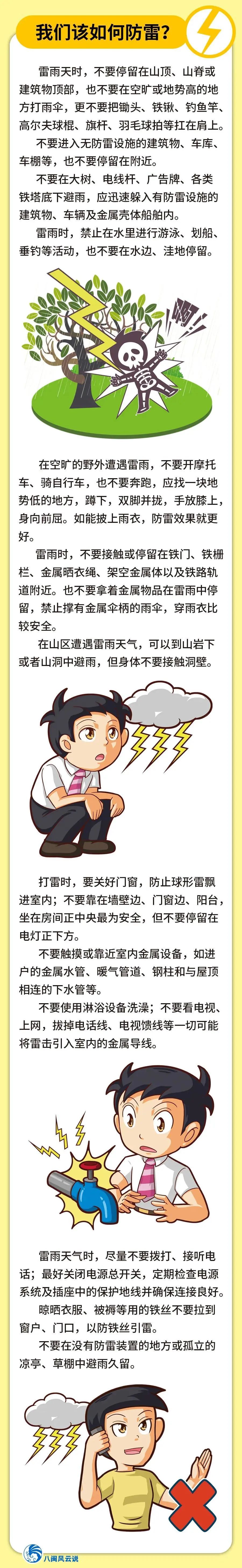 省气象台提醒,局地强雷雨具有突发性、强度大等特点易引发山洪、泥石流、城区内涝等次生灾害,甚至造成人员意外伤亡。遇局地强雷雨,不可在江边、水边戏水,要到地势较高、牢固可靠的建筑物避雨,防止意外发生。