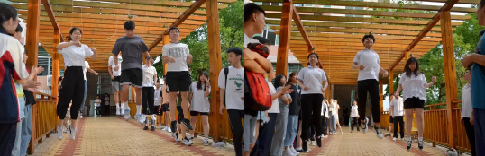 老师们还别出心裁地将粽子悬挂在高处,让同学们一路助跑起跳,用脑袋顶粽子,寓意高“粽”。