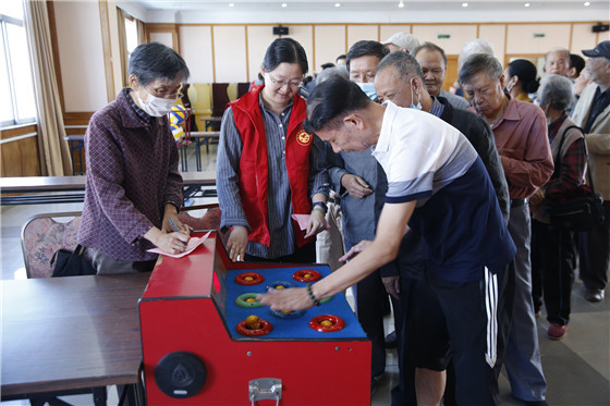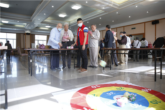 通报会结束后,为离退休老同志组织了趣味游园活动。设置抛兜球、定距套圈、投篮、掷飞镖和打地鼠等趣味项目,老同志们踊跃参与,在欢声笑语中相互传递着节日的问候和祝福,衬托出满满的幸福感,现场气氛活跃热闹。