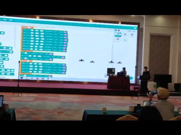 姜立彧老师现场演示编辑程序,无人机随之起飞,并按照程序不断变换队形,配合美妙的音乐,上演了一场精彩的灯光秀,科技感十足。