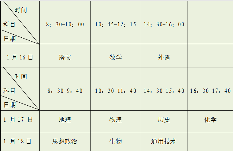 省级统一组织的学业水平合格性考试将于2021年1月16日至18日举行。