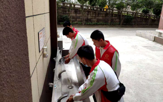 为切实提高学生节水节能意识,学校还成立了节水督导队。志愿者们在老师的带领下,在校园以及学生宿舍公寓开展节水督查。