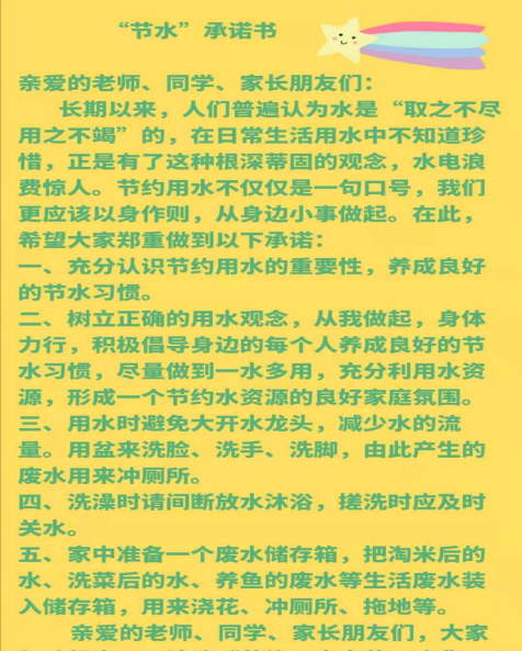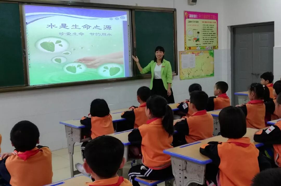 学校根据学生认知水平和学习能力的不同,每个班都制定了不同的节水标语,并且鼓励学生们上台分享自己的节水故事,在学校和家里完成节水小目标。