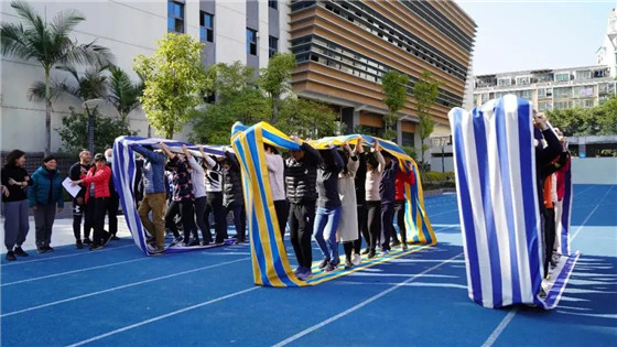 福州第十八中学开展的是迎新年趣味活动。无敌风火轮、时空隧道、踩气球以及拔河比赛,让老师们工作的紧张和生活的压力随着掌声和笑声得到了有效缓解和释放。
