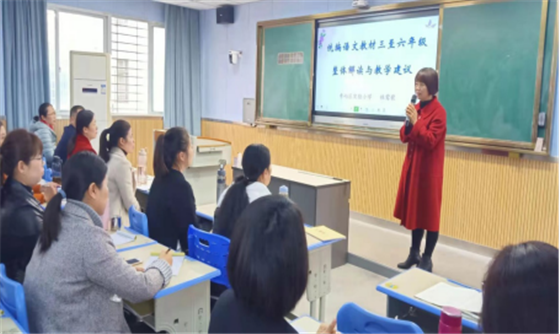 她还积极倡导语文科教师的学习共同体,创建了“年段主题教研模式”:有新老教师的示范课、学习课,有资深名师的专题讲座,还有思维碰撞的互动点评等,这种模式深受老师们的喜爱,成为实小校本教研的品牌。她还创新性地把“年段主题教研模式”和形式多样的小教研相结合,通过备课小组磨课、质量分析会、年段集体备课等,让老师们从个体单干走向团队合作,形成了学习共同体,助推大批青年教师成为省市级学科带头人、骨干教师。