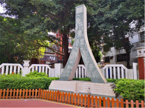 走进泉州市实验小学,首先映入眼帘的是一个硕大的“人”字雕塑,“人”字立在一本翻开的“书”上,顶部雕刻着一个时钟,时钟时间是早上八点。“时间指向8点,寓指学生们就像早晨8点钟的太阳一样朝气蓬勃!”曾旭晴说,底下那本翻开的书,蕴含着无穷的知识,代表学校教书育人工作;书上站立的“人”,代表着学生沐浴在“和谐、阳光”的校园里,今天是阳光的实小人,长大成长为社会有用之人,成为卓然而立的“大写”之人。