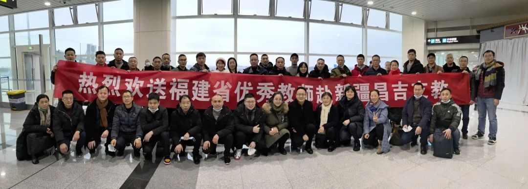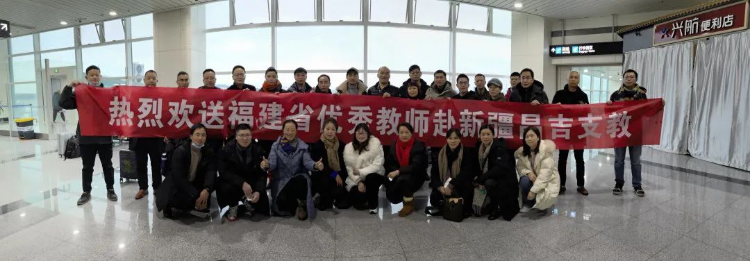 2月21日上午8点,来自全省各地的91名教师从福州长乐机场集结出发,赴新疆昌吉开启一年的支教之旅。