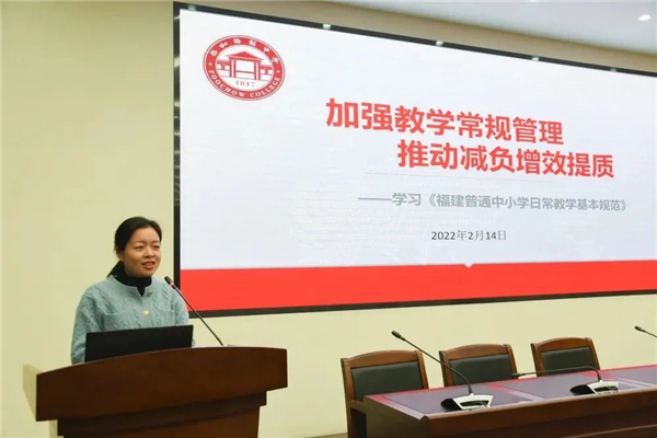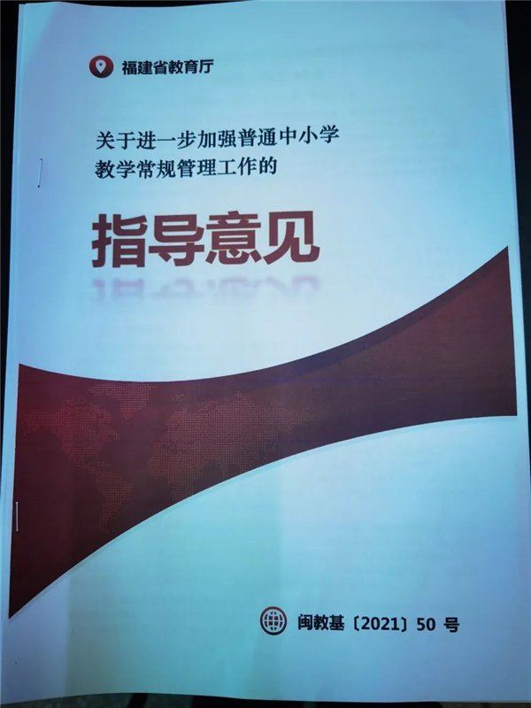 《指导意见》提出,各地各校要采取集中培训、视频培训等形式开展专题培训,将教学常规纳入各级各类教育行政干部、校长和教师综合培训重要内容。“教学工作是学校的中心工作,加强教学常规管理是高中新课程改革扎实落地的重要保障,也是学校高质量发展的重要前提。”新学期开学,福州格致中学校长为全体教师上了一堂特殊的“开学第一课”,组织教师学习《福建省普通中小学日常教学基本规范》,要求每位老师把具体要求落实到每一天的教学行为中去。