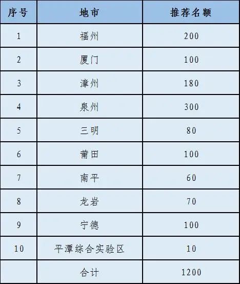 各设区市、平潭综合实验区按照推荐名额向省教育厅遴选推荐,推荐过程中应适当向农村偏远地区的教师倾斜;省属学校向省教育厅直接申报,每校不超过5人。