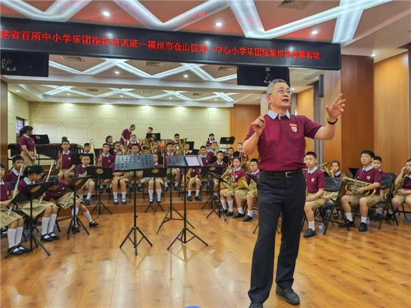 培训期间,授课专家还前往连江县琯头中心小学、福州市仓山区第一中心小学、福建师范大学附属中学等学校,针对民族管弦乐团、管乐团、西洋管弦乐团等三类代表性乐团,结合学员现场指挥实操,开展乐团排练提升教学。