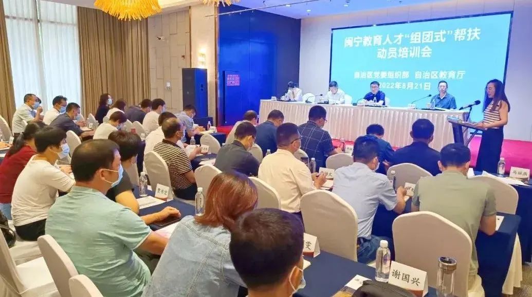 8月21日,闽宁两省区教育人才“组团式”帮扶动员培训会在银川举办。由福建省选派的10名校长、26名优秀教师和自治区选派的55名优秀教师将组建成10个教育团队,奔赴宁夏5个国家乡村振兴重点帮扶县,开展教育帮扶,续写闽宁教育“山海情”。