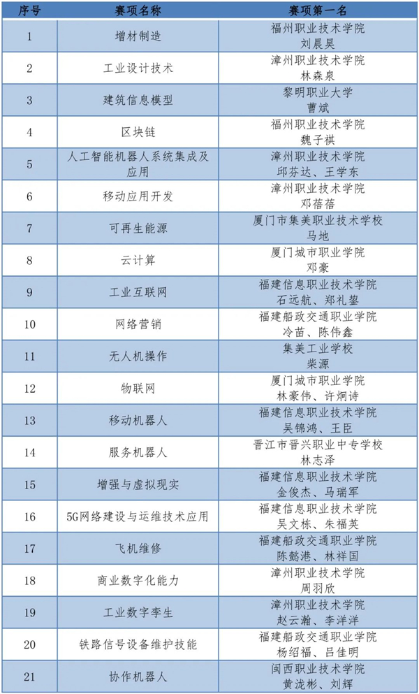 2022年金砖国家职业技能大赛福建赛区选拔赛成绩表
