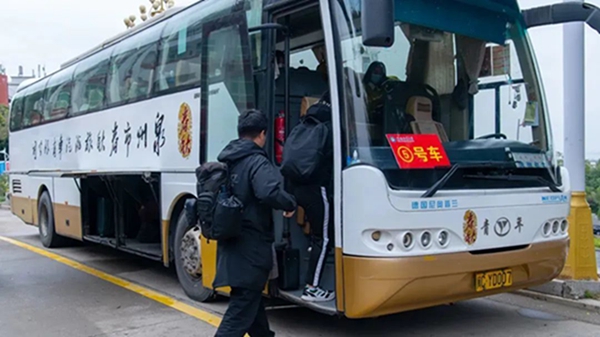 为方便学子返乡,黎明职业大学为学生们准备了送站专车。
