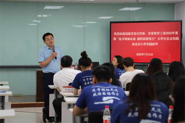 7月14日-16日,“追寻领袖足迹 感悟思想伟力”2023年福建省大学生暑期社会实践(全国线路)开启追寻领袖足迹的北京篇章,前往中国共产党历史展览馆、国家博物馆等地实践研习,并与北京大学马克思主义学院、中国人民大学马克思主义学院等高校师生交流研讨。
