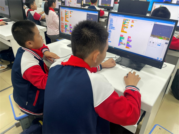 莆田荔城区麟峰小学在课后服务中,通过开设有趣的科创类制作与编程等课程,不断丰富青少年学生的校园文化生活。学校为低年级开设了“乐高机器人”课程,主要以创意拼搭和动作模仿为主;中高年级开设了“Scratch编程”、“C++编程”、“趣玩无人机”、“科学思维创想”等社团,引导学生学习编程语言和掌握运用各种传感器,解决现实生活中的问题。