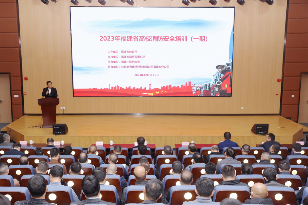 12月6日,2023年福建省高校消防安全培训班(第一期)在福建中医药大学举办。省教育厅党组成员、副厅长吴伟平出席开班式。全省各高校保卫处负责人、消防安全干部共120余人参加培训。