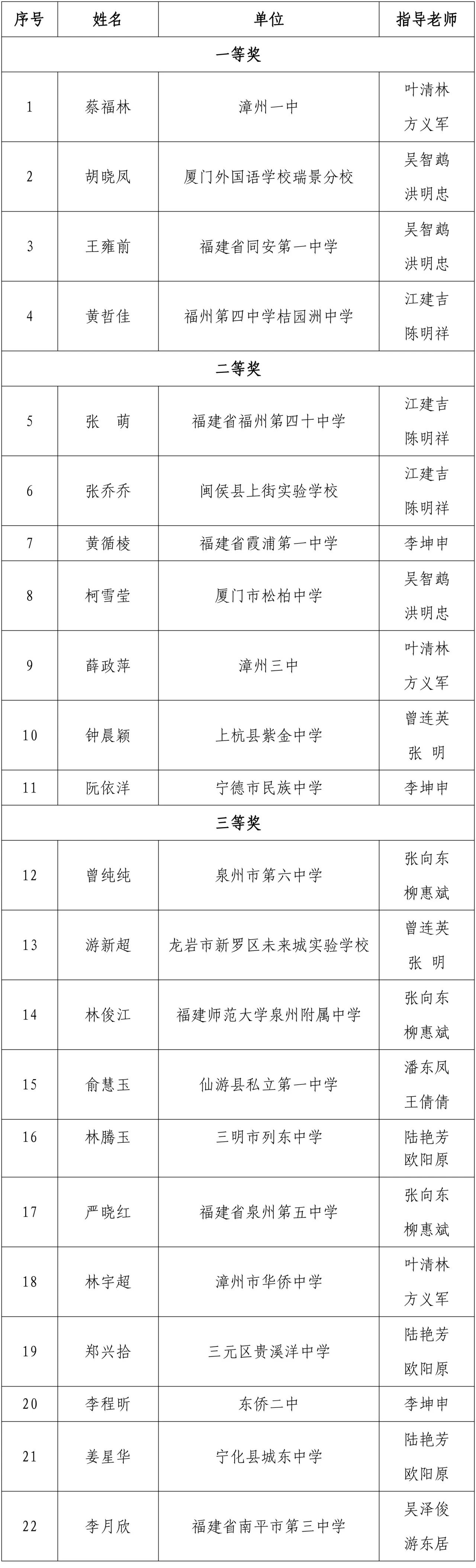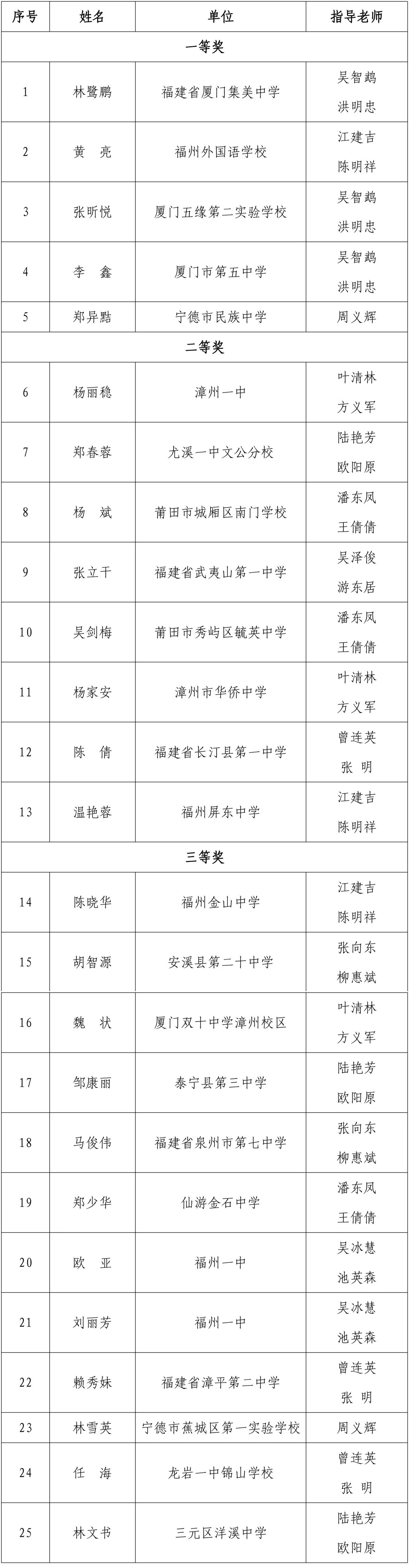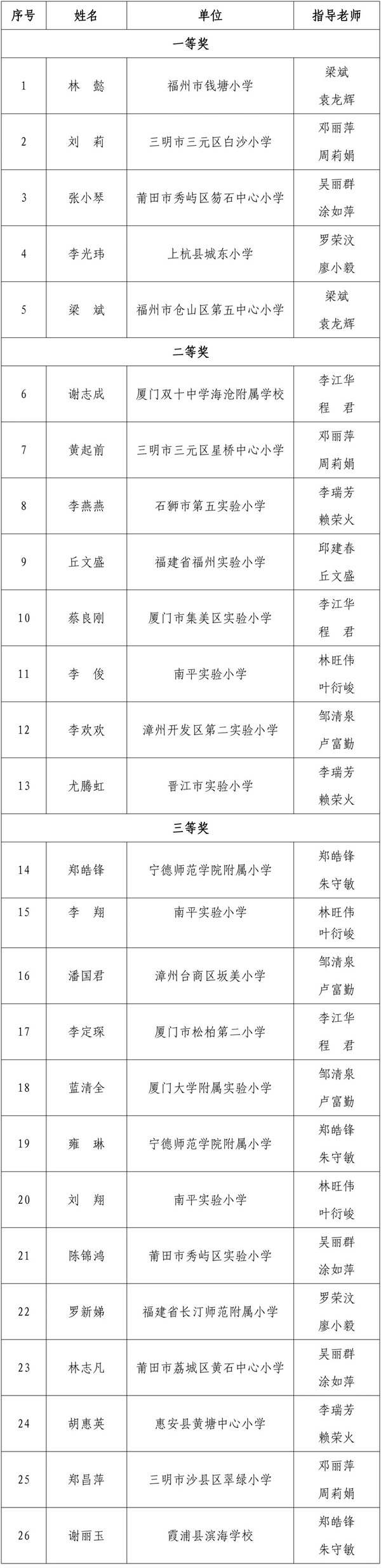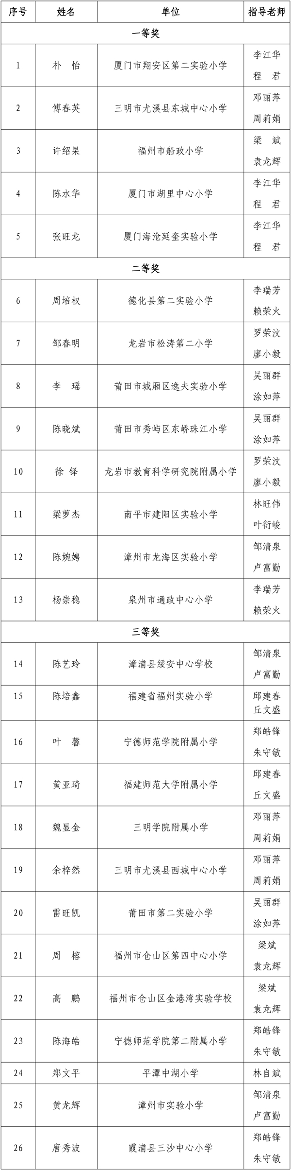 2023年第五届福建省义务教育阶段体育教师教学技能获奖名单