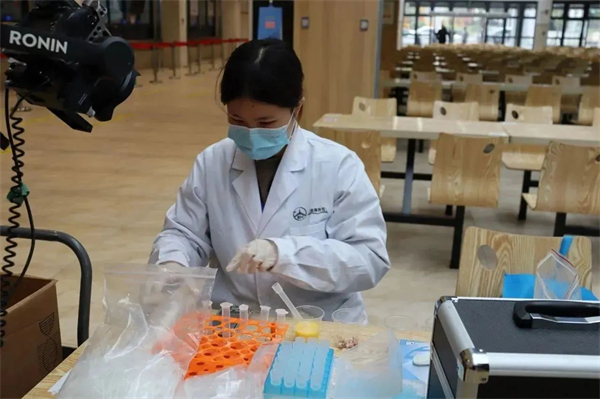 在福州,省、市联合检查组对福州第十一中学横屿校区食堂进行现场检查,并全程直播。检查组执法人员依次检查食堂清洗区、切配区、烹饪区、售菜间、留样、洗消间、食品仓库等区域,对现场发现存在的隐患问题,逐一指出并提出整改措施。检查中还委托第三方检测机构现场抽取了6份蔬菜、肉类等食材,开展速测,快检结果显示农药残留、兽药残留、瘦肉精等项目均为阴性(合格)。
