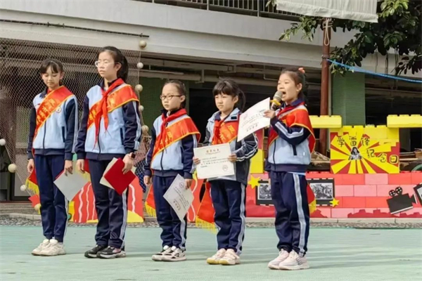 厦门市演武第二小学荣获区“乐于奉献小义工”的刘歆雅、刘忻乐等五位优秀的少先队员回到母校,向弟弟妹妹介绍自己践行雷锋精神的事迹,在弟弟妹妹心中种下了学习雷锋、乐于奉献的种子。