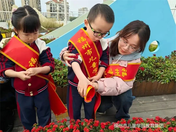 福州市儿童学园教育集团的教师与孩子们共同开展学雷锋志愿服务活动。志愿者分工协作、铲土拔草,一起灌溉希望的小苗。爱绿护绿的种子随着小苗在孩子心中生根发芽。