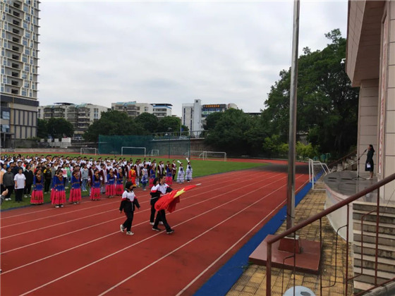 10月1日上午,厦门外国语学校新疆内高班师生在学校操场举行2020年国庆节升旗仪式。
