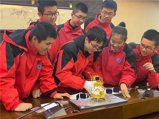 随着嫦娥五号返回器携带月球样品胜利着陆地球,此次举世瞩目的中国探月工程画上了一个圆满的句号,嫦娥五号探测器副总设计师、霞浦一中1994届校友阮剑华将一套珍贵的“嫦娥五号”模型捐赠给母校。带着对航天梦想的期冀,带着对航天英雄的崇敬,霞浦一中的同学们按捺住激动的心情,兴致勃勃地将“嫦娥五号”模型顺利组装。精致的“嫦娥五号”模型金光闪闪,折射出中国航天事业发展的辉煌成就和阮剑华校友的赤子情怀。