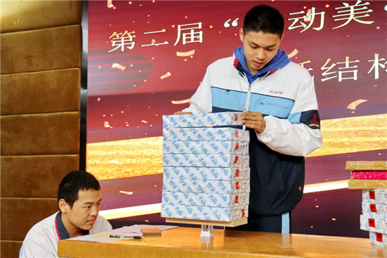 在泉州七中举行的纸结构设计比赛上,学生纷纷开动脑筋用一张A4纸设计制作一个高度不低于5cm,桌面面积不小于7cmХ7cm,不少于3根腿、自重不超过6克的桌子。最终高二年8班的洪锋、蔡铭杰同学以5克的模型承重39.422千克获得一等奖第一名。