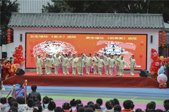 京剧是中华民族的无价瑰宝。2021年1月4日,福州实验小学举行了元旦迎新暨高雅艺术进校园文艺汇演。学校“燕前堂”京剧院社团的全体成员为现场师生演绎了六个唱段、长达7分钟的京剧联唱《我们的国粹》,展示祖国传统文化艺术的魅力与风采。福州实验小学长期聘请福建省京剧院毕立波、陈红华老师为其校园文化品牌—燕前堂京剧院作指导。2020年9月开始,为了更好地在全校学生中进行京剧传统文化的普及教育,学校“燕前堂”京剧院社团成员由30人增到90人,并根据学生年龄特点构建低中高三阶梯队,让每个年级的学生学唱和欣赏京剧。“燕前堂京剧院”已成为福州实验小学传承中华优秀文化艺术的重要的载体。