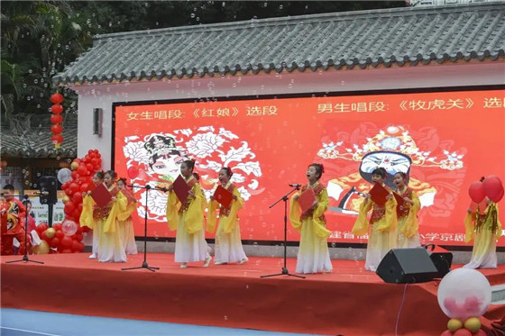 漳州锦歌是一种有管乐伴奏的歌唱形式,是闽南主要民间曲艺之一,被列入第一批国家级非物质文化遗产名录。近日,在漳州龙文区2020年校园文化艺术节展演现场,国家非遗锦歌传承人王素华老师与漳州市第二实验小学的孩子们联手演绎的原创锦歌《龙文欢迎你》节目,将龙文地理风情与锦歌文化相结合,以独具匠心的构思和布景精美的表演,引发观众的强烈共鸣。近年来,漳州第二实验小学对锦歌表演做了课程资源开发上的传承和渗透,在王素华老师的带动下,学校通过收集闽南童谣编辑校本《爱我乡音》,举办童谣展演等形式,积极推进非遗文化进校园,加强对闽南文化的保护和传承。