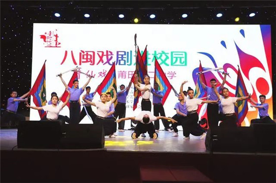 莆仙戏是福建省传统地方戏曲剧种。日前,“八闽戏剧进校园”莆仙戏专场活动走进莆田第二中学,中国戏剧梅花奖得主、莆田艺术学校校长王少媛与莆田二中的同学们互动。同学们积极参与学习莆仙戏表演科介,体验生、旦的手势、步法等基本动作,通过稚嫩的模仿和学习,同学们充分感受到家乡戏曲艺术的博大精深。